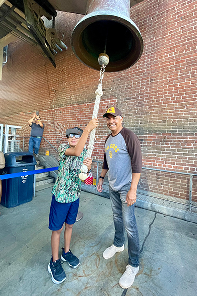 - July 24: Pictured (L to R): 13-year-old Bellringer Jedric and Ron Araujo, President of Mission Federal Services, LLC